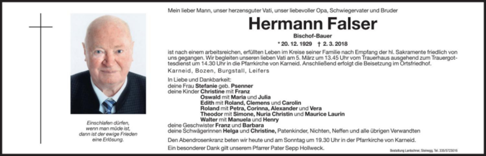 Wir begleiten unseren lieben Vati am 5. März um 13.45 Uhr vom Trauerhaus ausgehend,