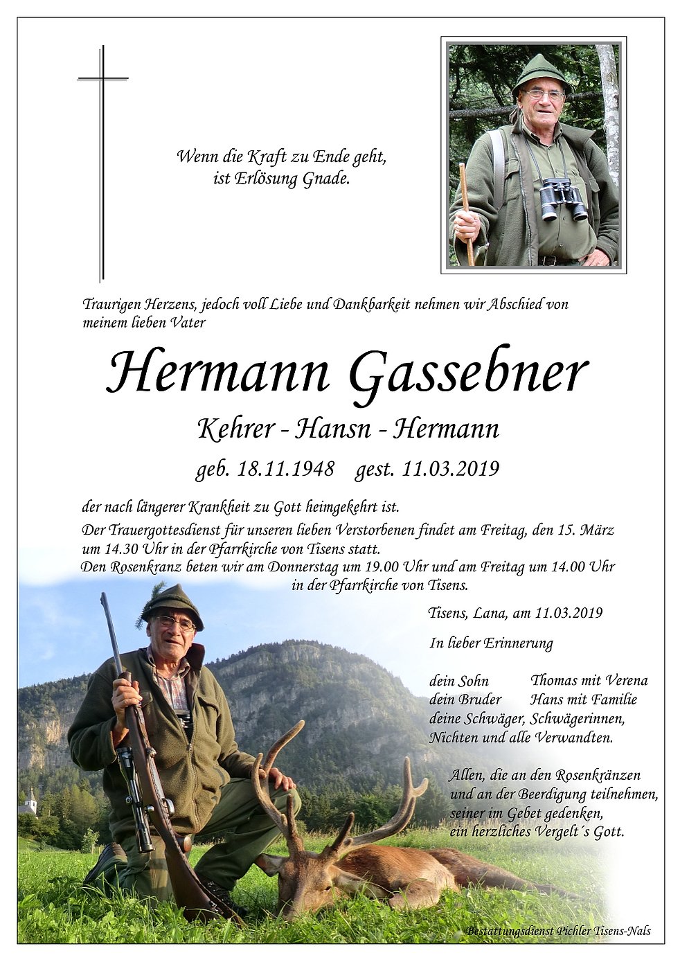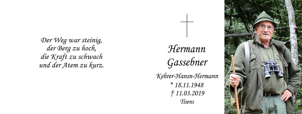 Trauerfeier: 15.03. - 14:30 Uhr Tisens