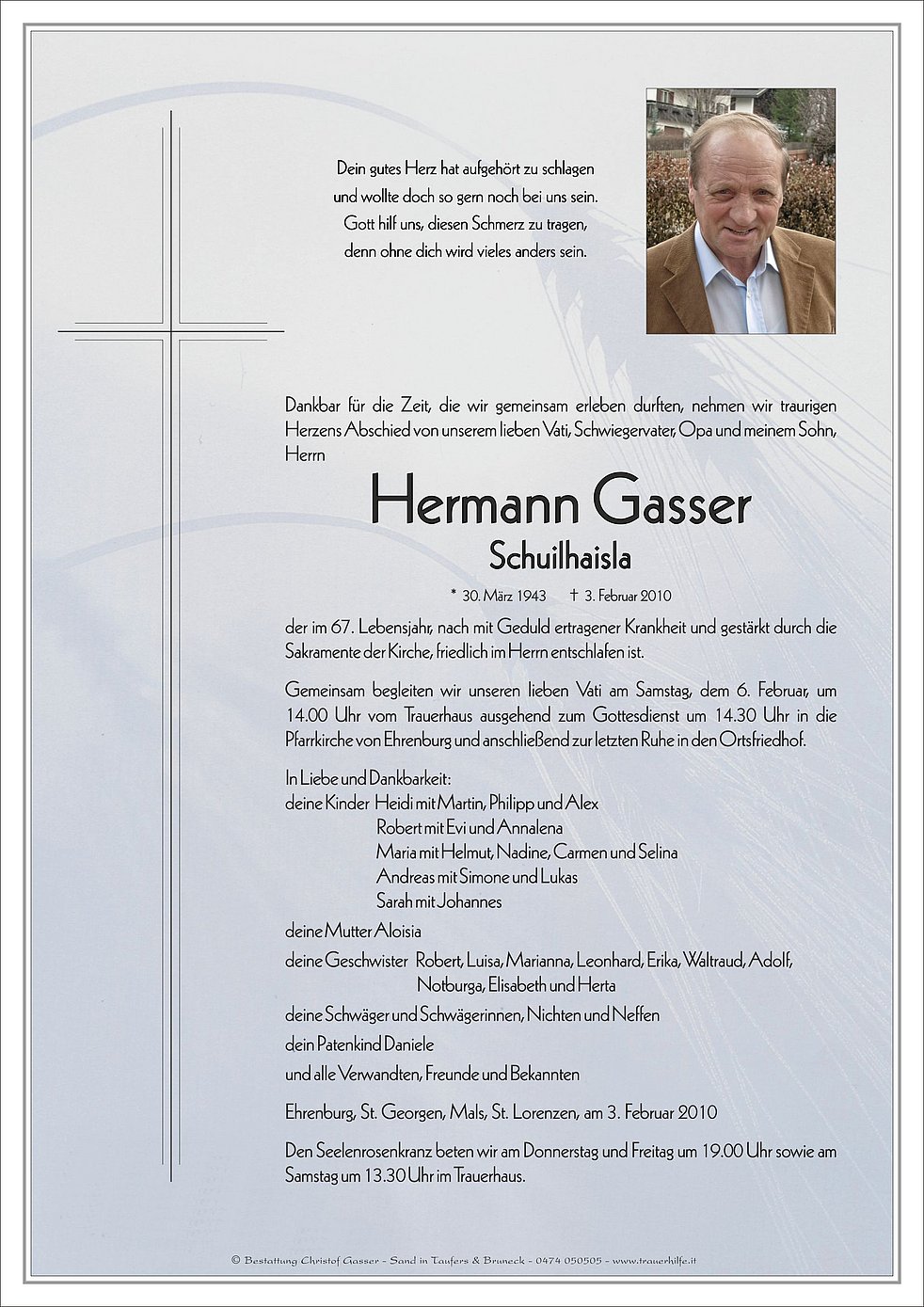 Gemeinsam begleiten wir unseren lieben Vati am Samstag, dem 6. Februar, um 14.00 Uhr vom Trauerhaus ausgehend zum Gottesdienst um 14.30 Uhr in die Pfarrkirche von Ehrenburg und anschließend zur letzten Ruhe in den Ortsfriedhof.