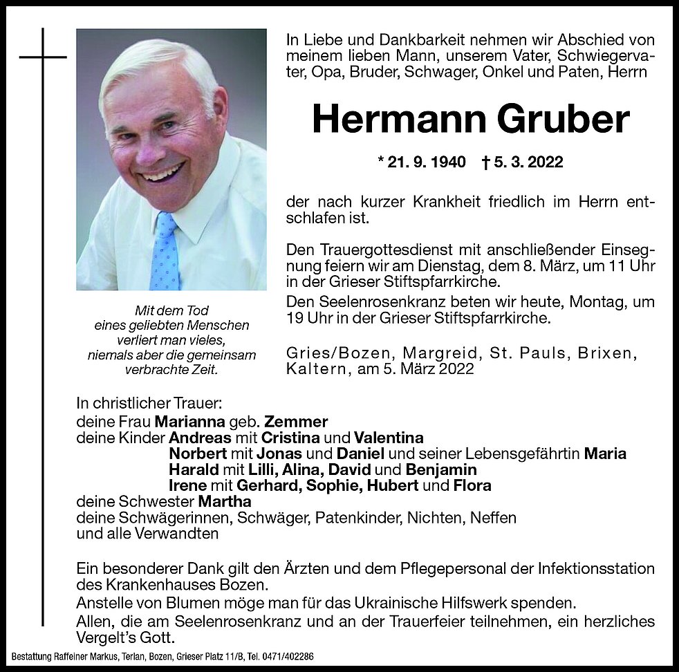 Den Trauergottesdienst mit anschließender Einsegnung feiern wir am Dienstag, dem 8. März, um 11 Uhr in der Grieser Stiftspfarrkirche.