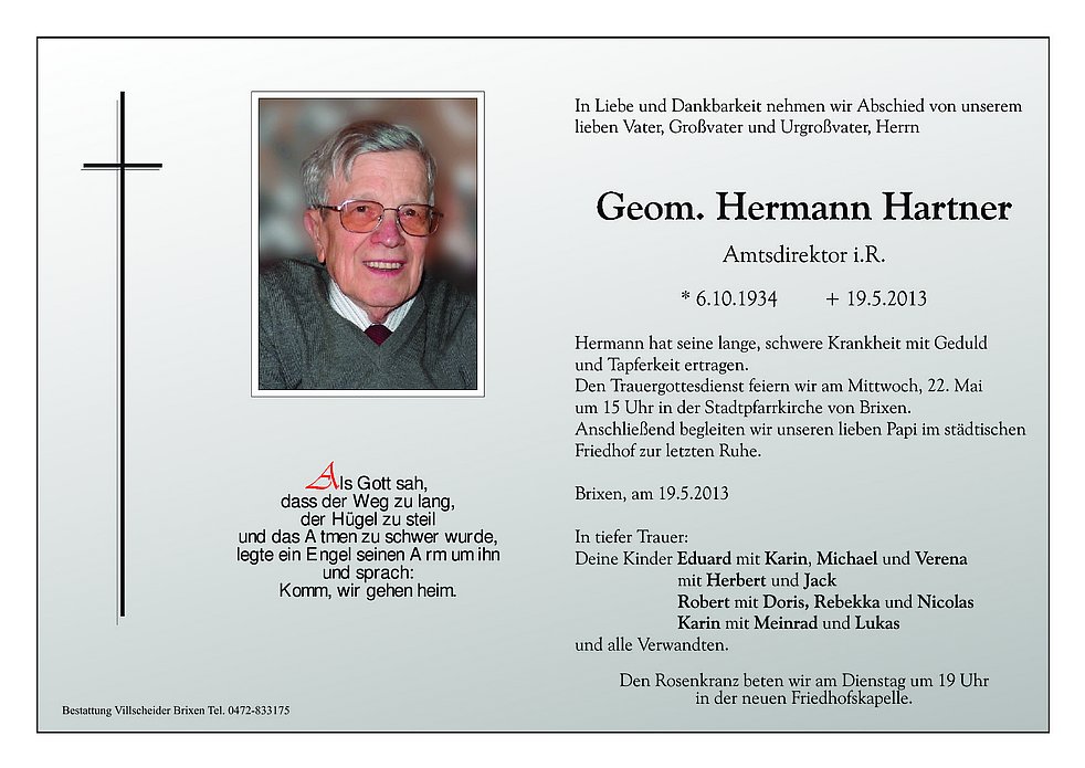 In Liebe und Dankbarkeit nehmen wir Abschied von unserem lieben Vater, Großvater und Urgroßvater, Herrn