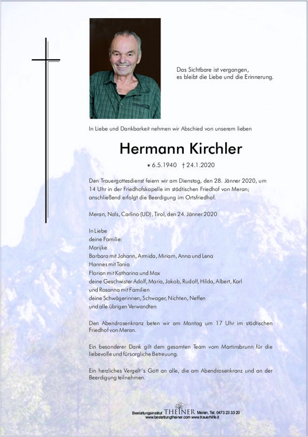 Den Trauergottesdienst feiern wir am Dienstag, den 28. Jänner 2020, um