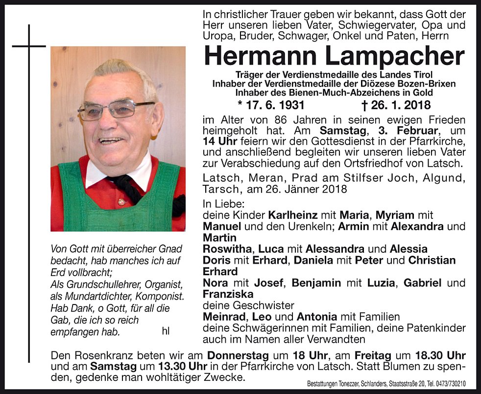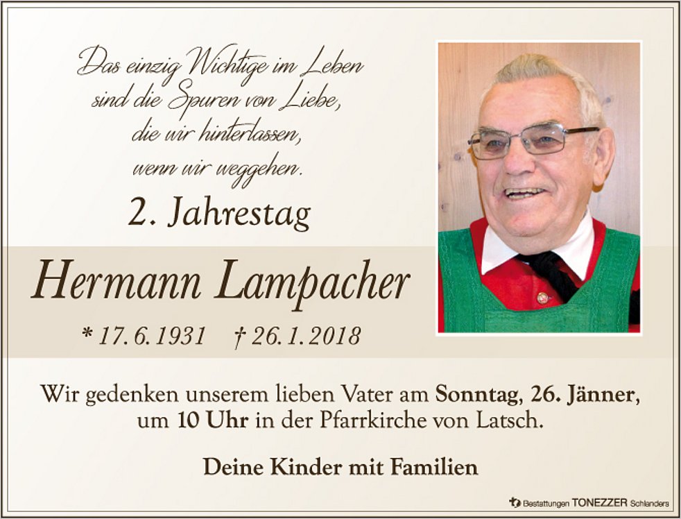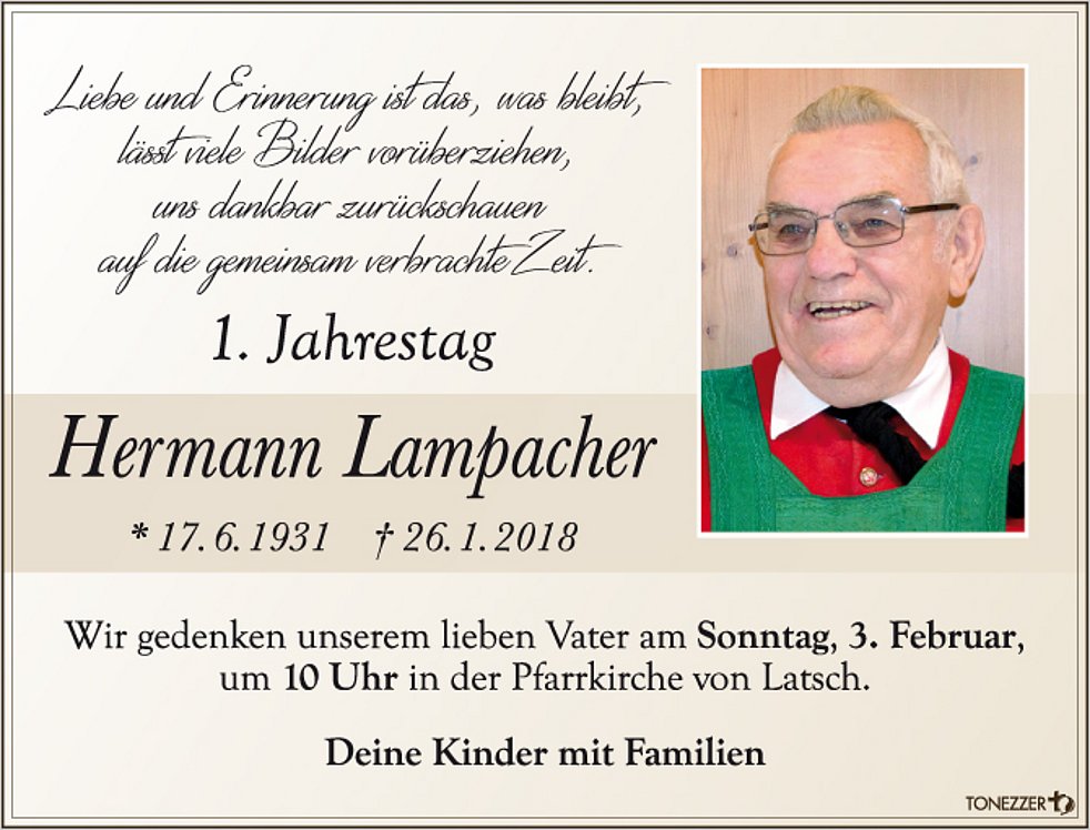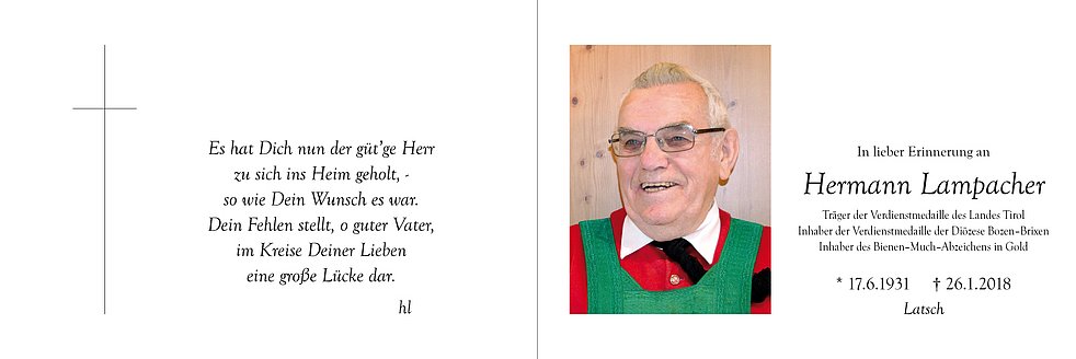 Am Samstag, 3. Februar, um 14 Uhr feiern wir den Gottesdienst in der Pfarrkirche, und anschließend begleiten wir unseren lieben Vater zur Verabschiedung auf den Ortsfriedhof von Latsch.