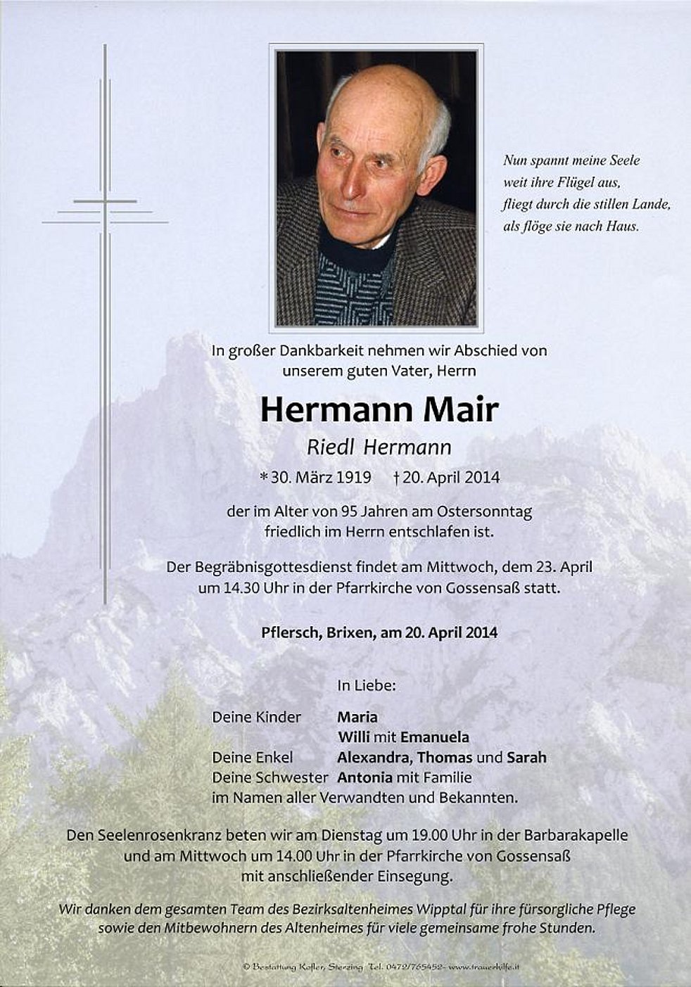 und am Mittwoch um 14.00 Uhr in der Pfarrkirche von Gossensaß mit anschließender Einsegnung.