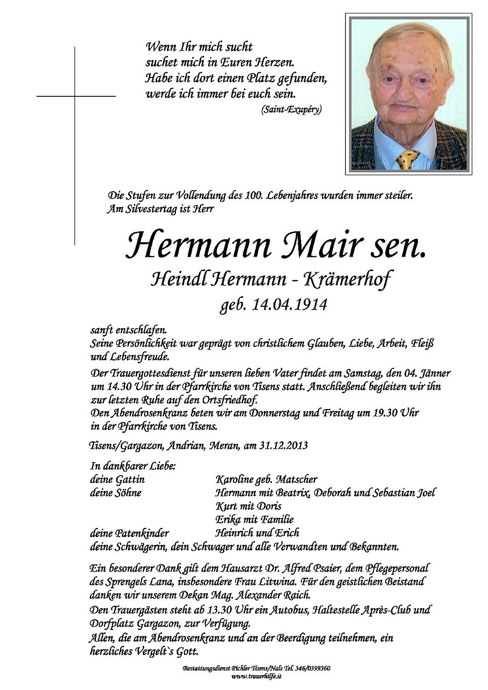 um 14.30 Uhr in der Pfarrkirche von Tisens statt. Anschließend begleiten wir ihn