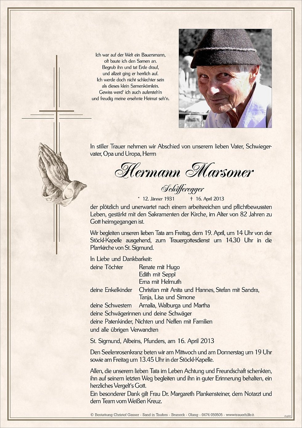 Allen, die unserem lieben Tata im Leben Achtung und Freundschaft schenkten, ihn auf seinem letzten Weg begleiten und ihn in guter Erinnerung behalten, ein herzliches Vergelt‘s Gott.