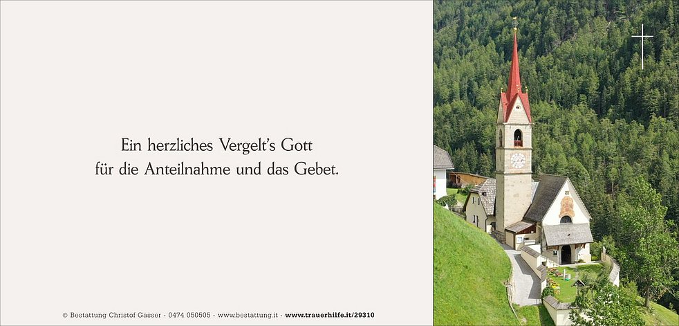 Den Wortgottesdienst feiern wir am Montag, dem 16. September, um 14.30 Uhr in der Pfarrkirche von Gais.