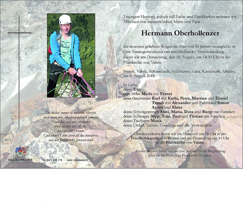 der in seinen geliebten Bergen im Alter von 55 Jahren verunglückt ist