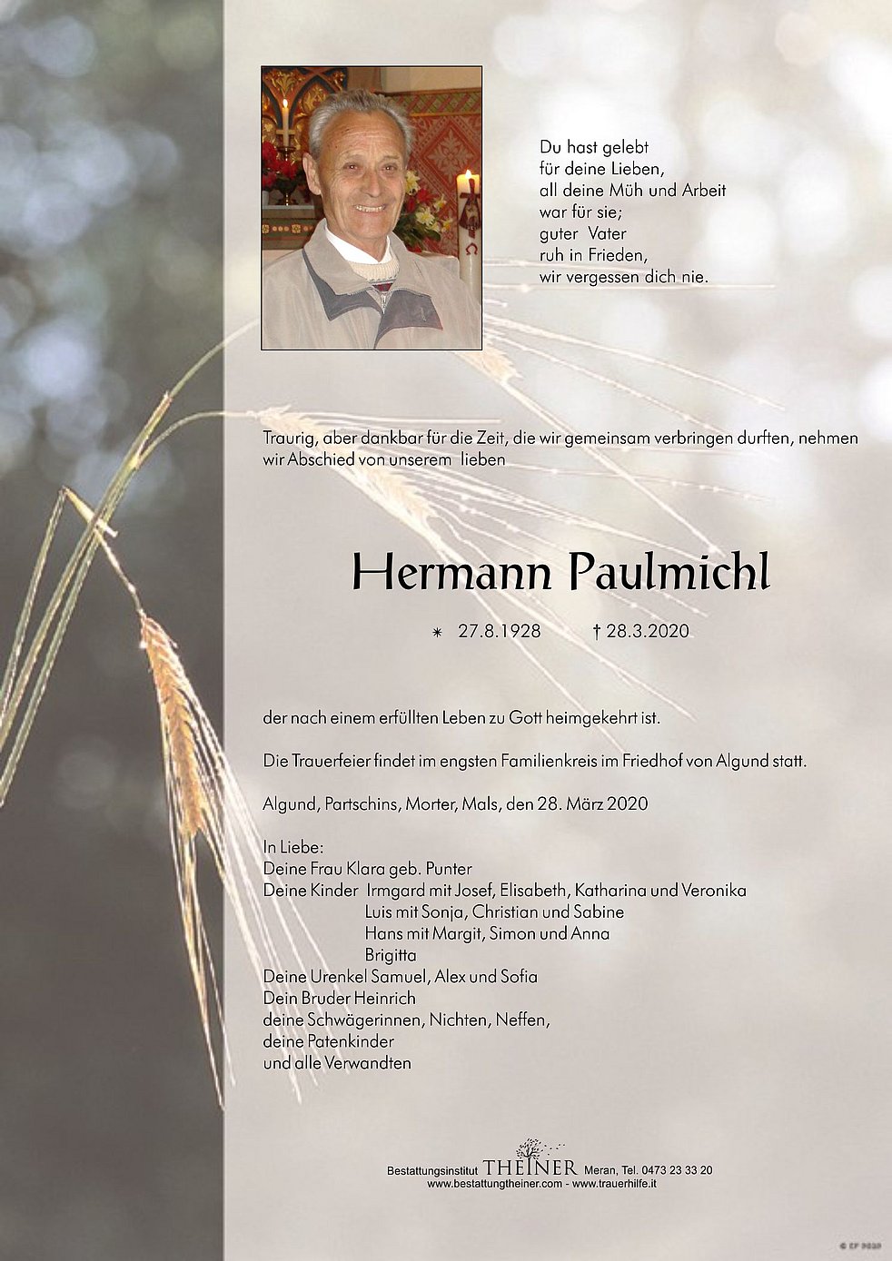 Die Trauerfeier findet im engsten Familienkreis im Friedhof von Algund statt.