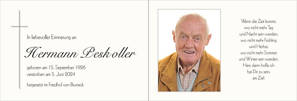 Den Trauergottesdienst feiern wir am Samstag, dem 8. Juni, um 10 Uhr