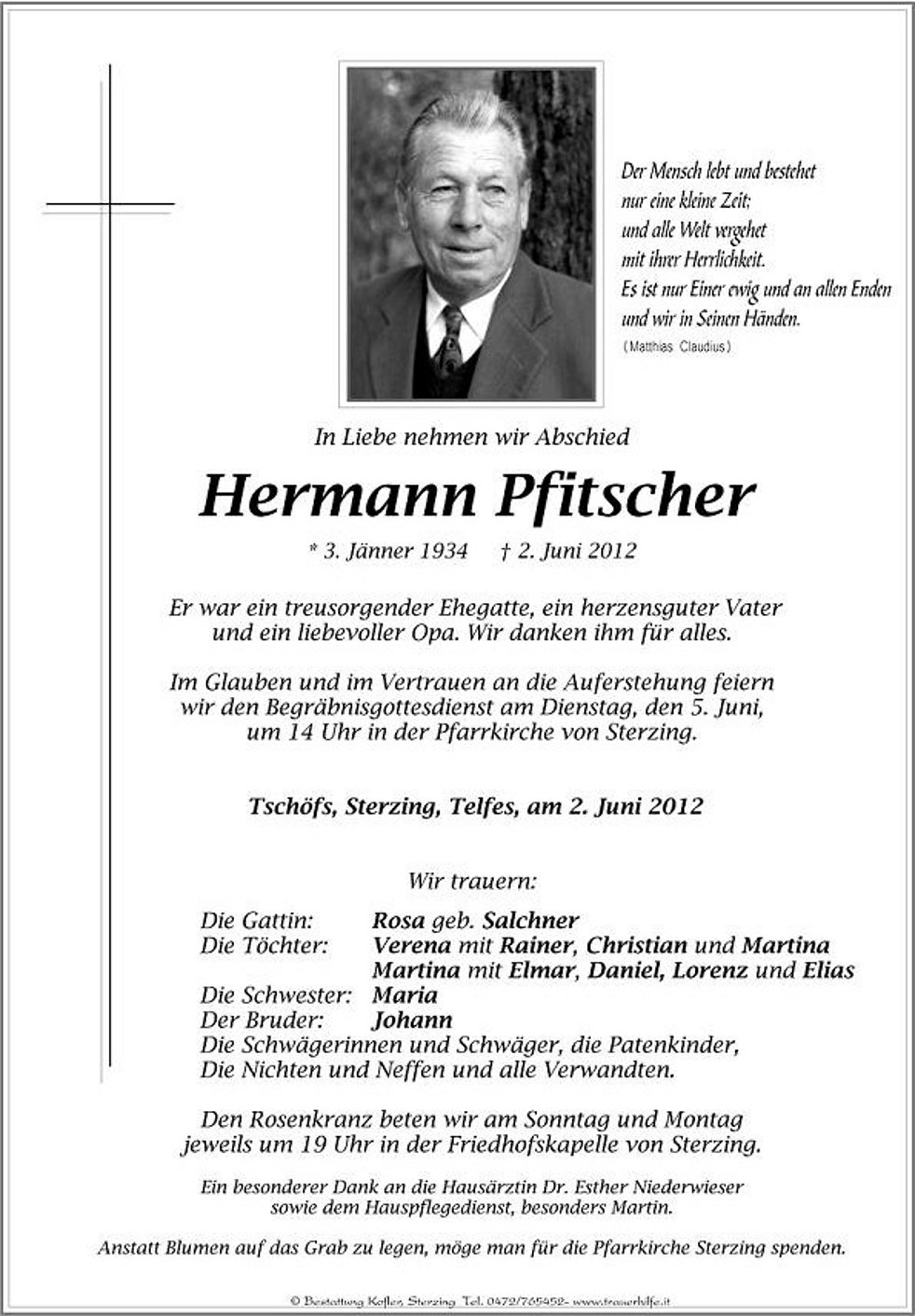 Anstatt Blumen auf das Grab zu legen, möge man für die Pfarrkirche Sterzing spenden.