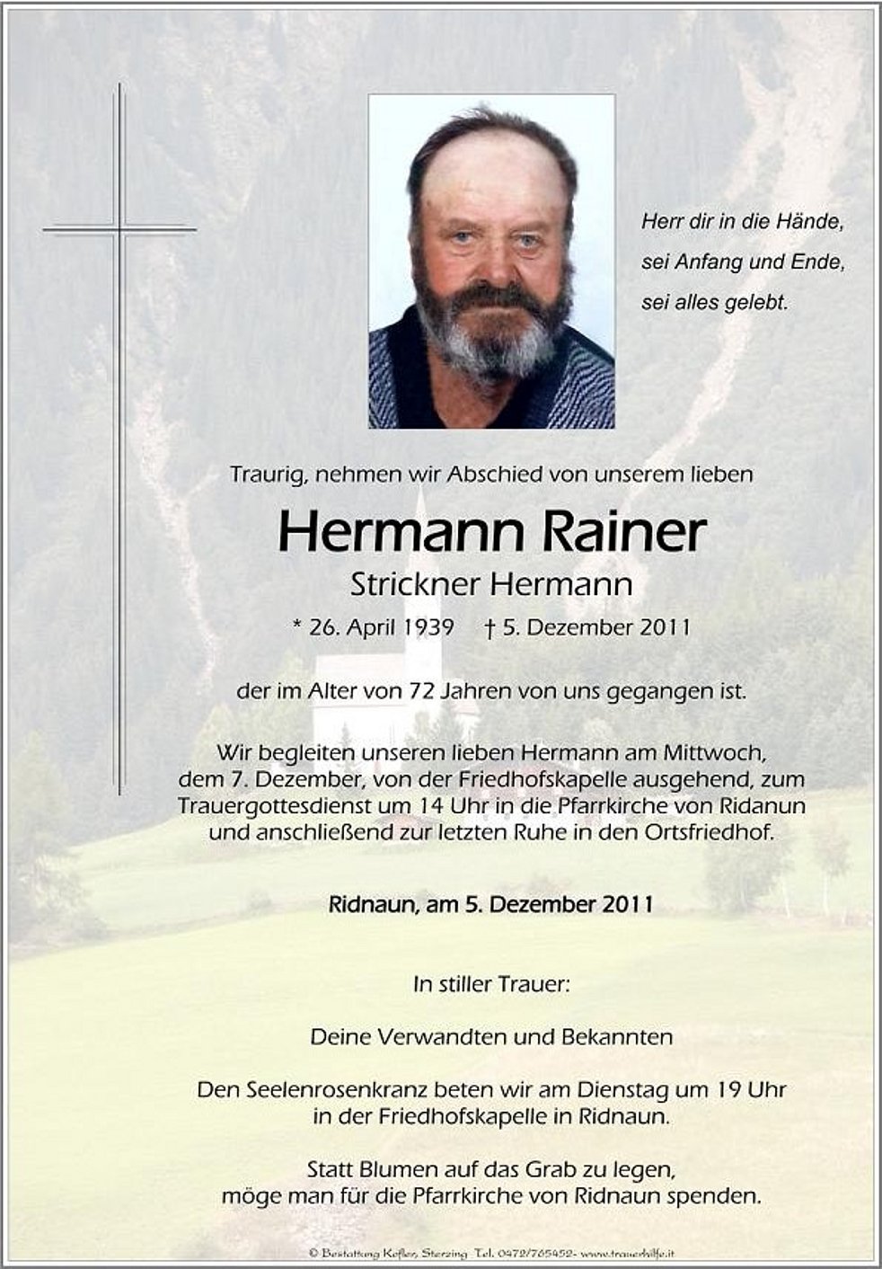 Statt Blumen auf das Grab zu legen, möge man für die Pfarrkirche von Ridnaun spenden.