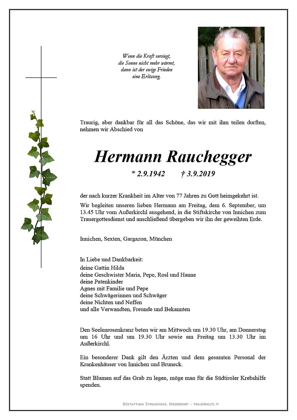 Wir begleiten unseren lieben Hermann am Freitag, dem 6. September, um 13.45 Uhr vom Außerkirchl ausgehend, in die Stiftskirche von Innichen zum Trauergottesdienst und anschließend übergeben wir ihn der geweihten Erde.