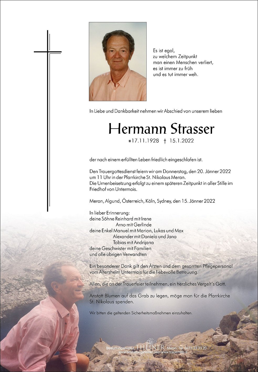 Den Trauergottesdienst feiern wir am Donnerstag, den 20. Jänner 2022 um 11 Uhr in der Pfarrkirche St. Nikolaus Meran.