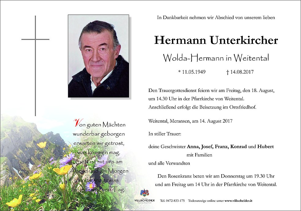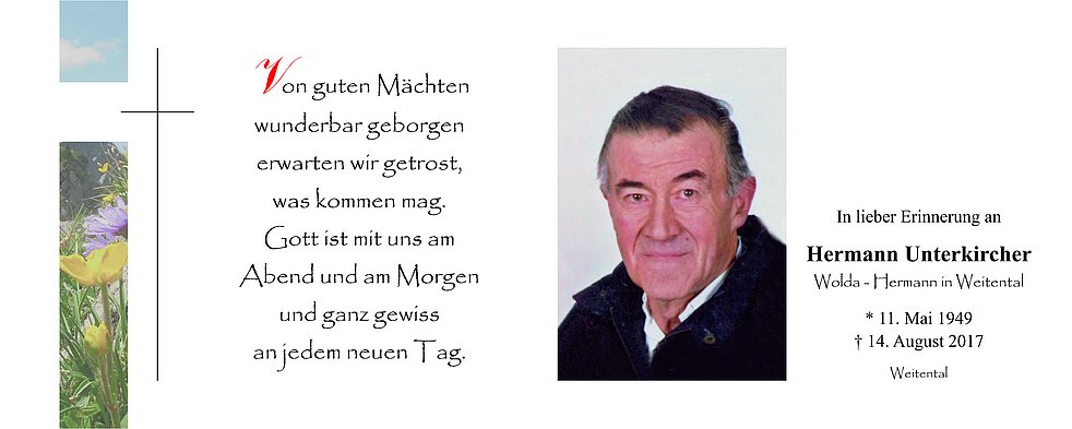 Den Trauergottesdienst feiern wir am Freitag, den 18. August,