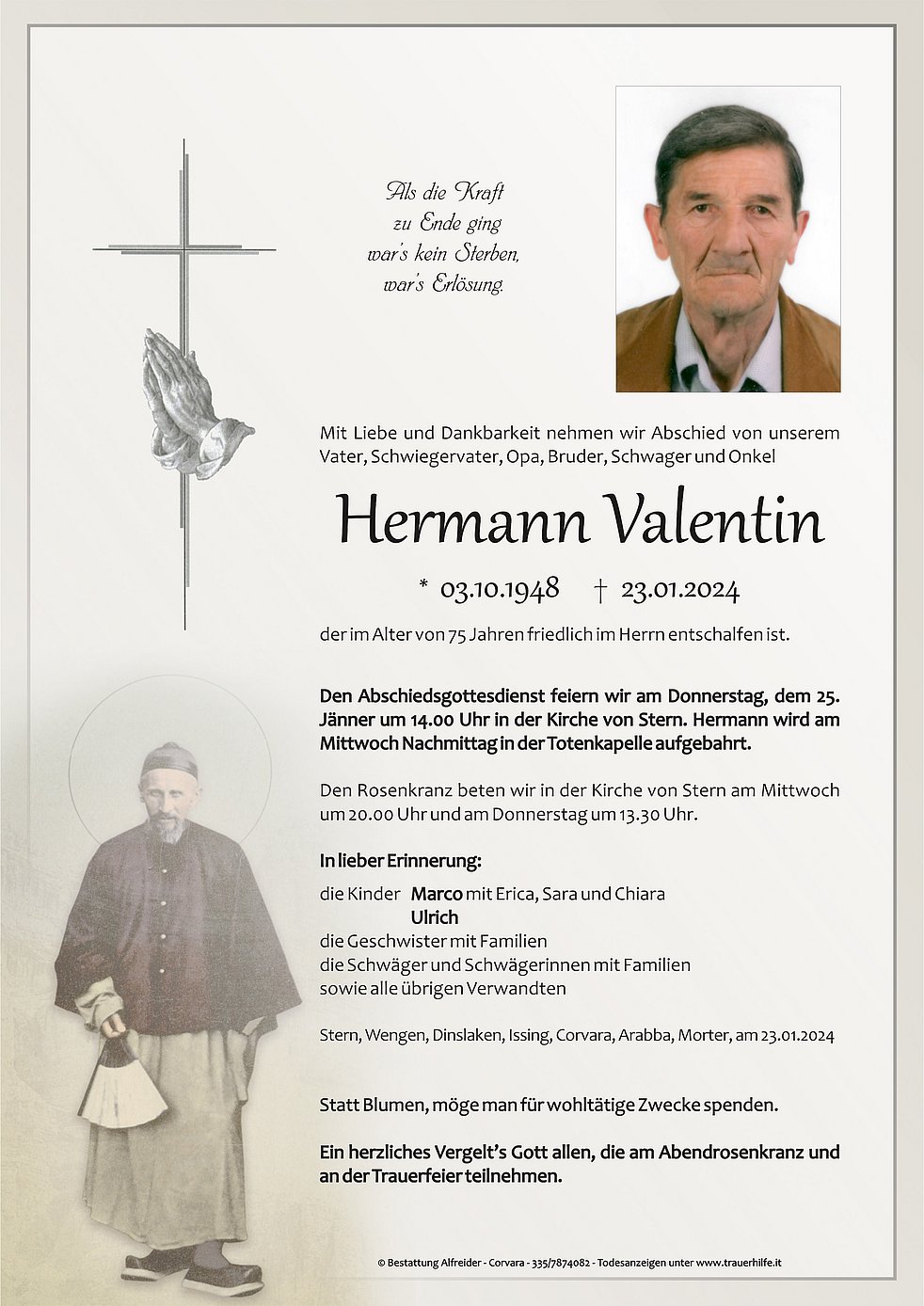 Hermann ,palsa tla pesc de Dî Sintides condolianzes