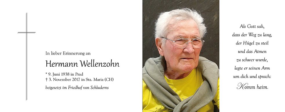* 9. Juni 1938 in Prad † 3. November 2017 in Sta. Maria (CH)