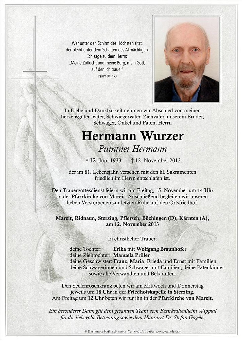 für die liebevolle Betreuung sowie dem Hausarzt Dr. Stefan Gögele.
