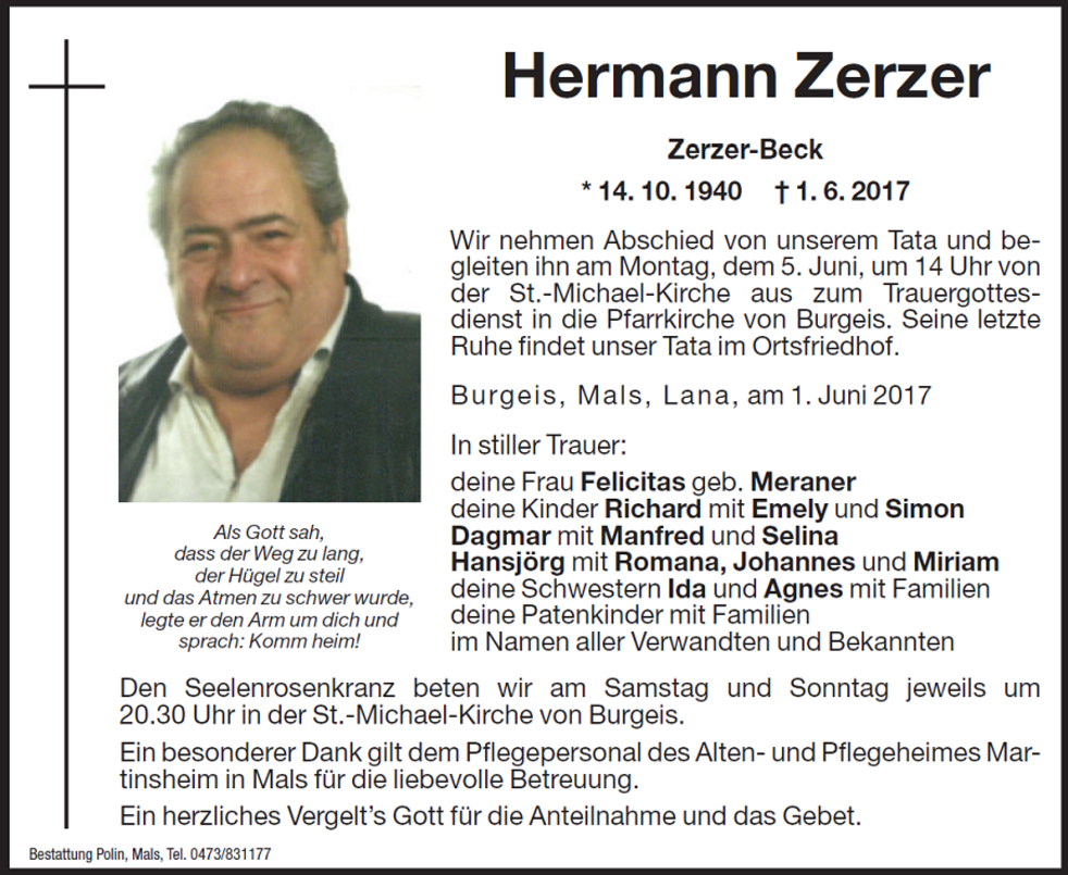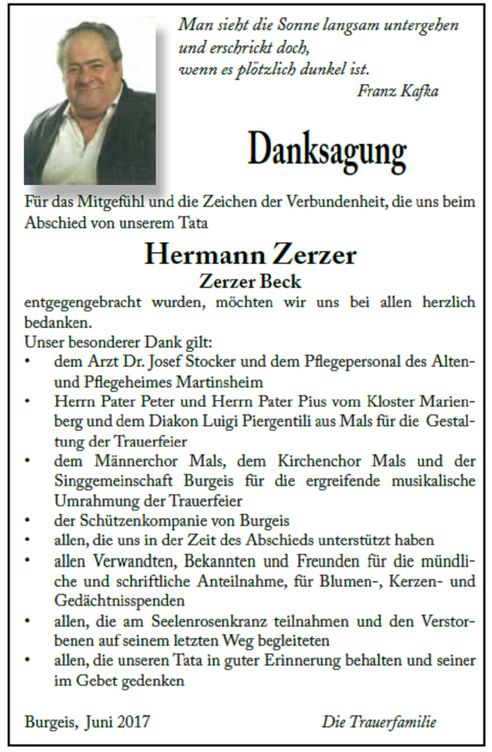 Ein herzliches Vergelt’s Gott für die Anteilnahme und das Gebet.