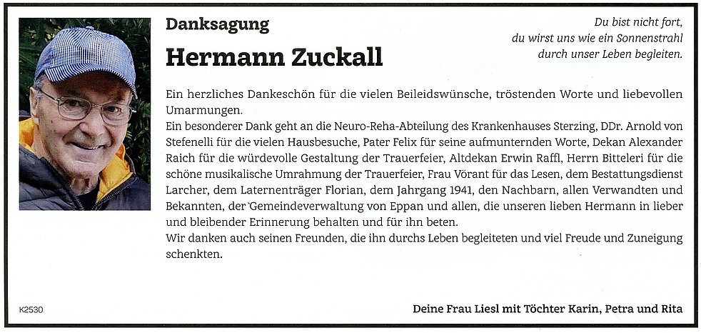 Allen, die am Rosenkranz und an der Beerdigung teilnehmen im Voraus ein herzliches Vergelt´s Gott.
