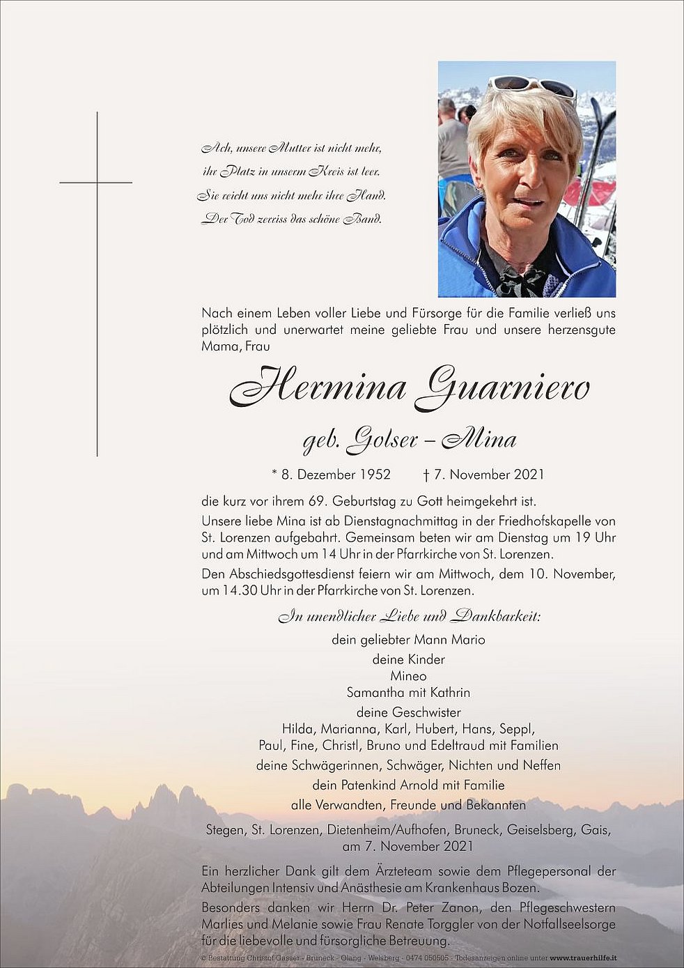Unsere liebe Mina ist ab Dienstagnachmittag in der Friedhofskapelle von St. Lorenzen aufgebahrt.