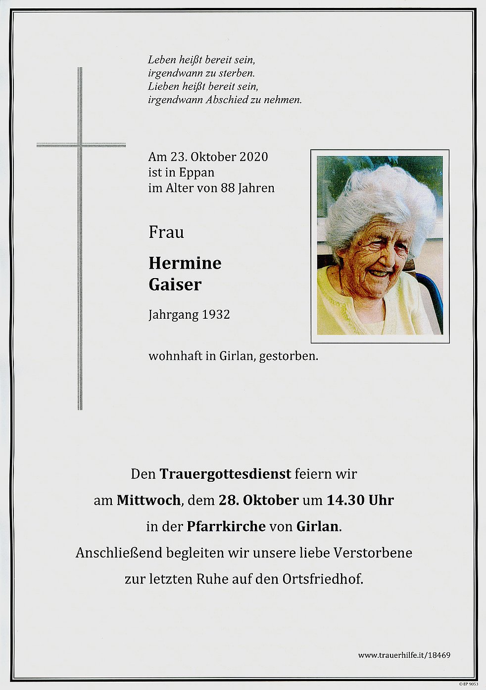 Begräbnisgottesdienst: 28.10. - 14:30 Uhr Pfarrkirche Girlan/Eppan