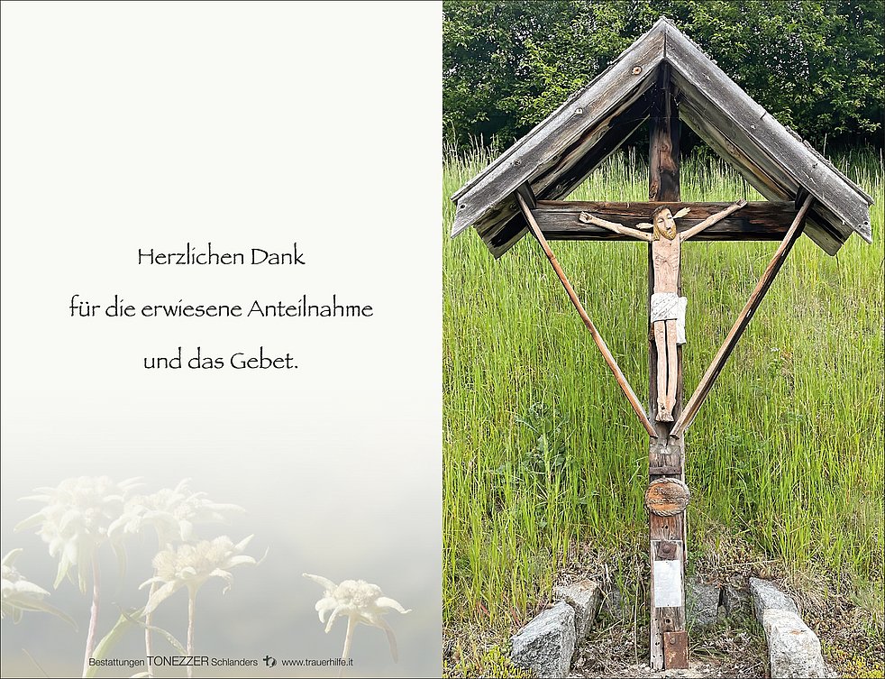 Ein besonderer Dank gilt den Hausärzten Dr. Wunibald Wallnöfer und Dr. Joachim Ruepp sowie dem Team vom Martinsheim Mals und vom Krankenhaus Schlanders für die liebevolle und fürsorgliche Betreuung.