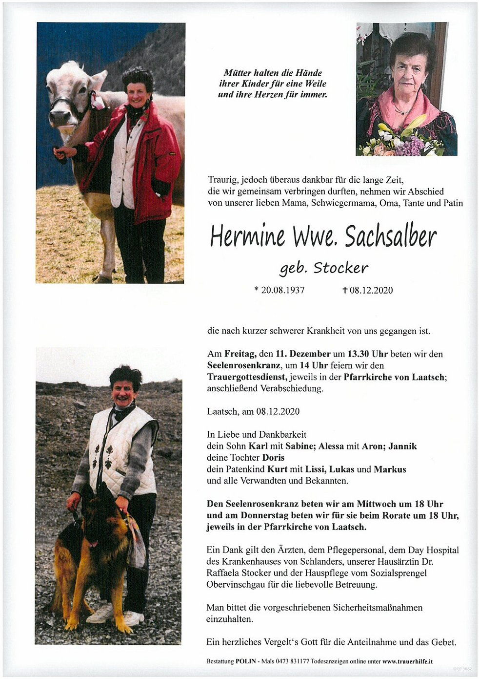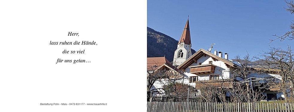 des Krankenhauses von Schlanders, unserer Hausärztin Dr. Raffaela Stocker und der Hauspflege vom Sozialsprengel Obervinschgau für die liebevolle Betreuung.