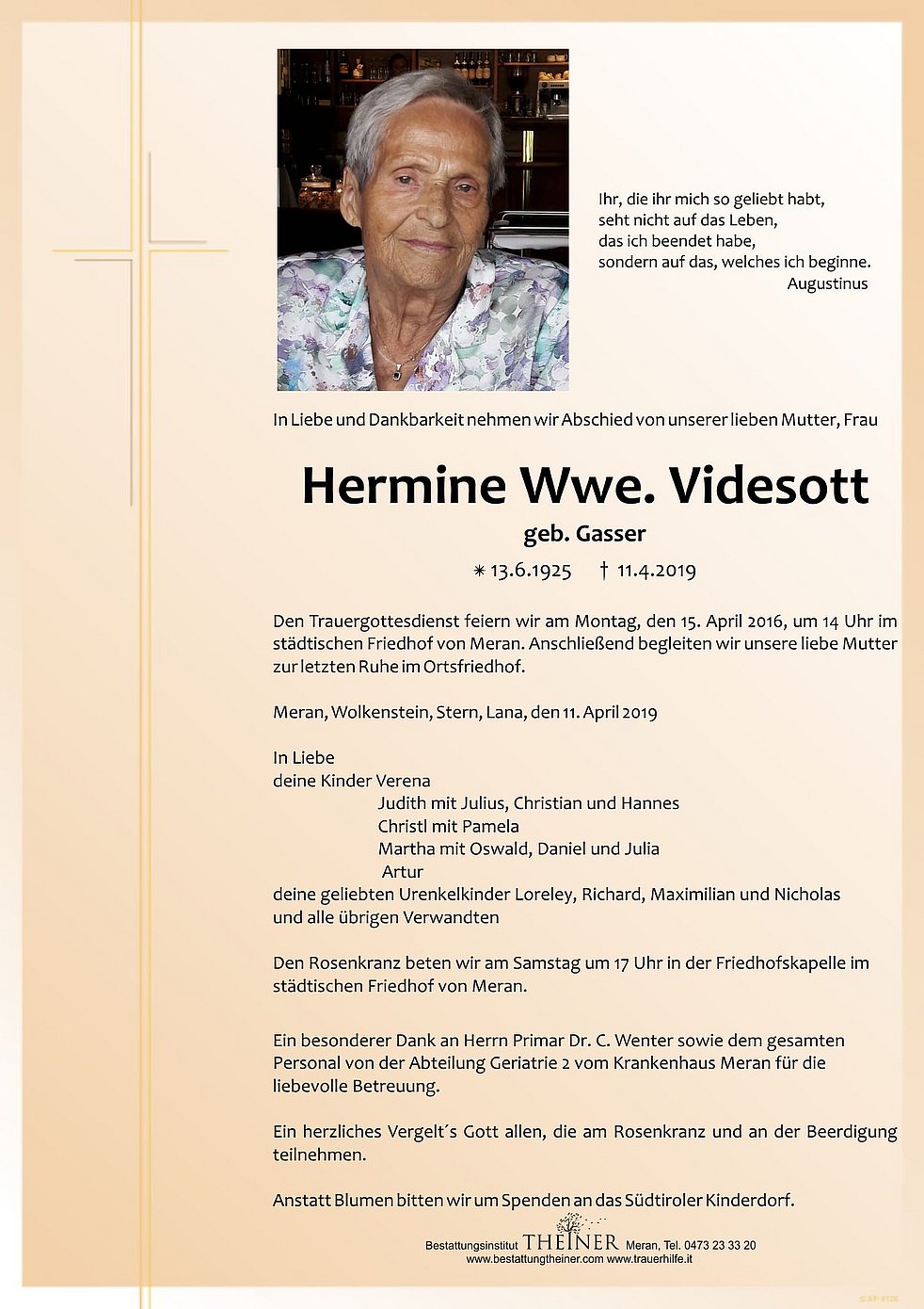 Den Trauergottesdienst feiern wir am Montag, den 15. April 2016, um 14 Uhr im städtischen Friedhof von Meran. Anschließend begleiten wir unsere liebe Mutter zur letzten Ruhe im Ortsfriedhof.