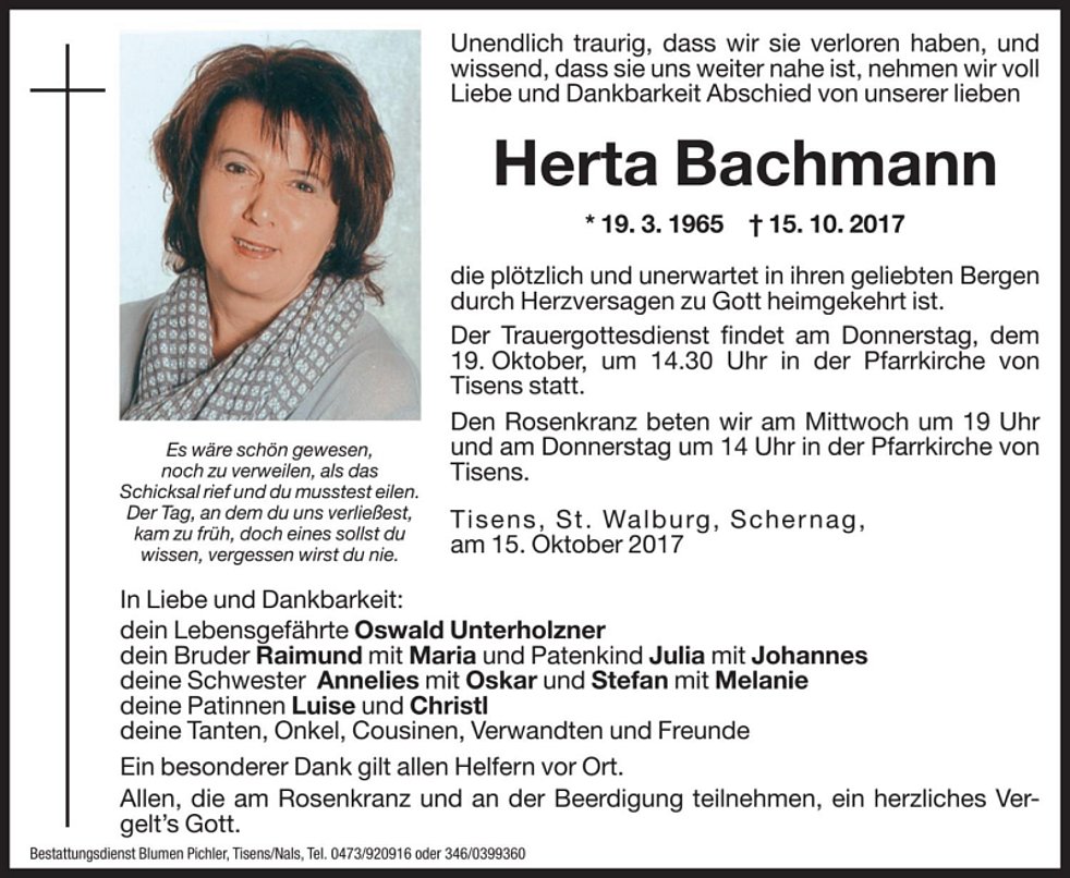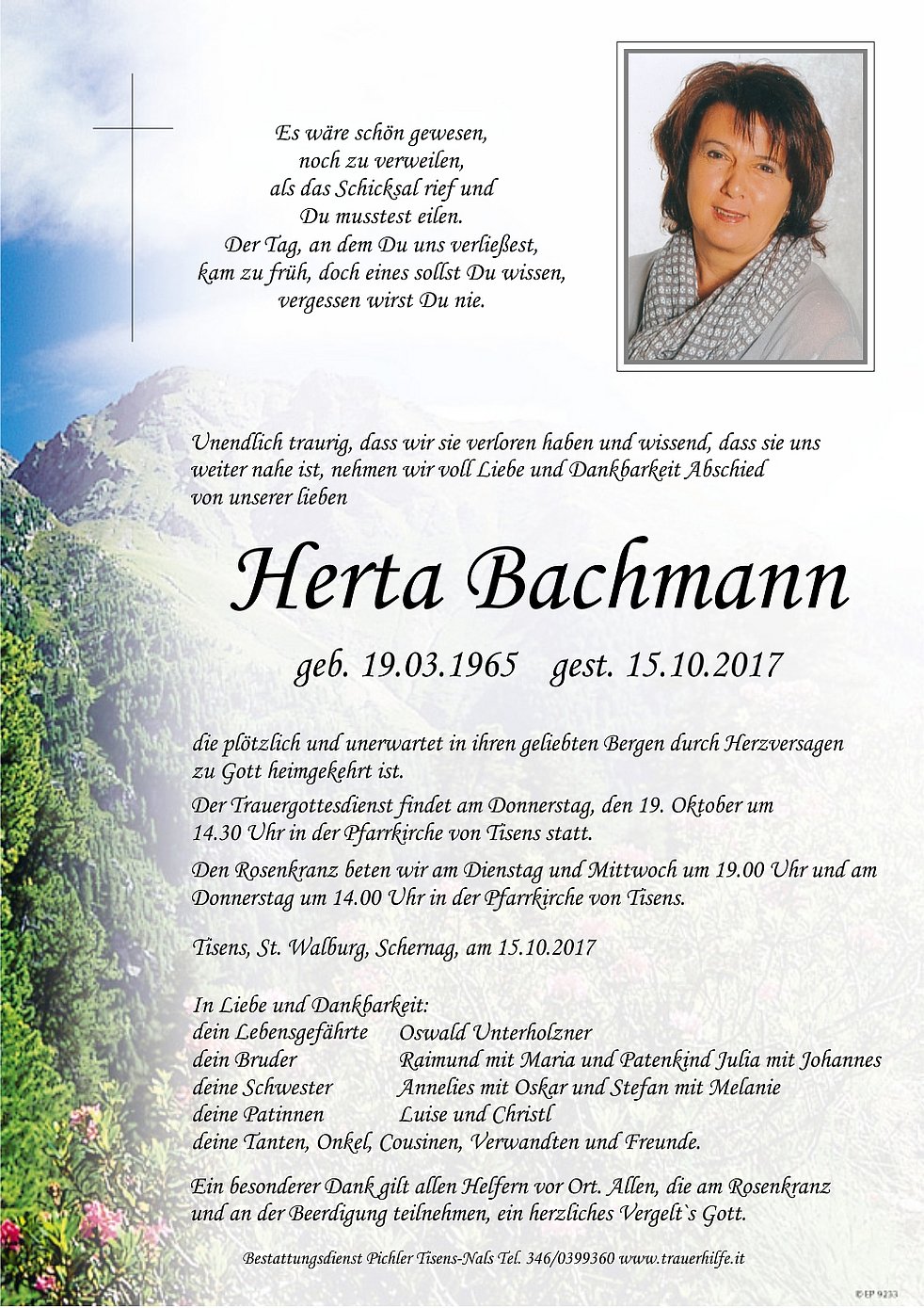 die plötzlich und unerwartet in ihren geliebten Bergen durch Herzversagen