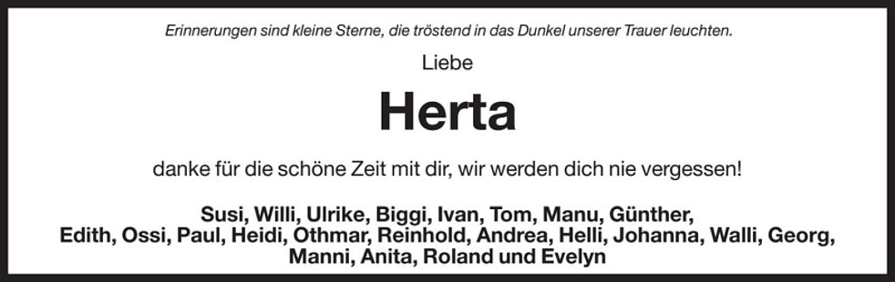 Unendlich traurig, dass wir sie verloren haben und wissend, dass sie uns