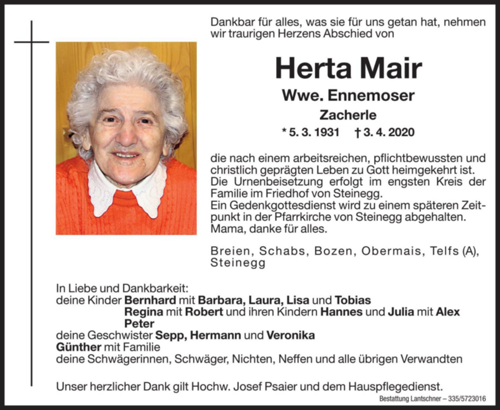 Ein Gedenkgottesdienst wird zu einem späteren Zeitpunkt in der Pfarrkirche von Steinegg abgehalten.