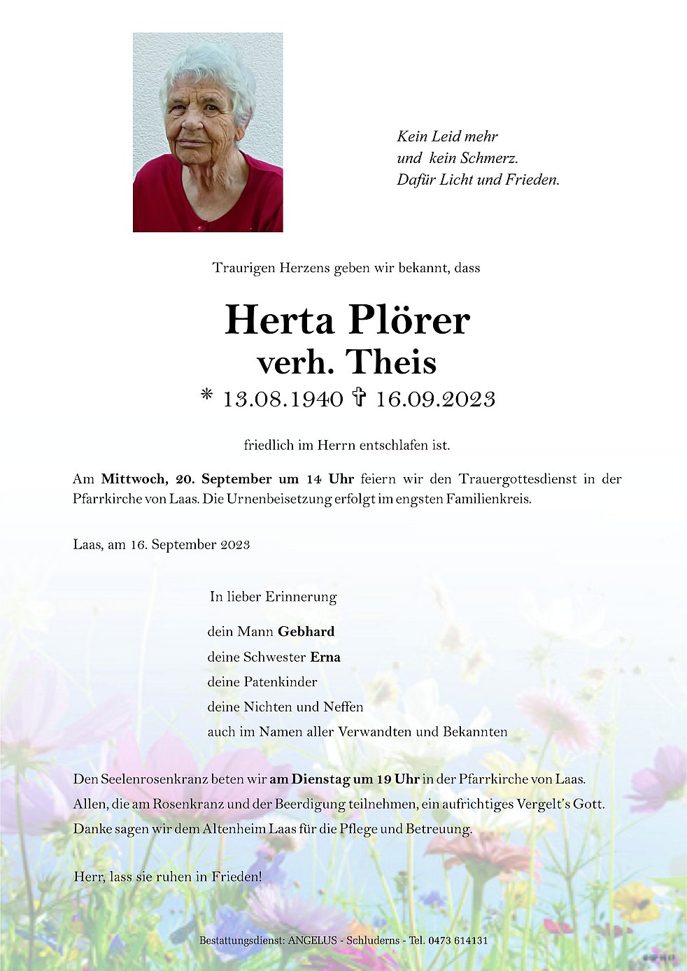 Trauerfeier: 20.09. - 14:00 Uhr Pfarrkirche von Laas