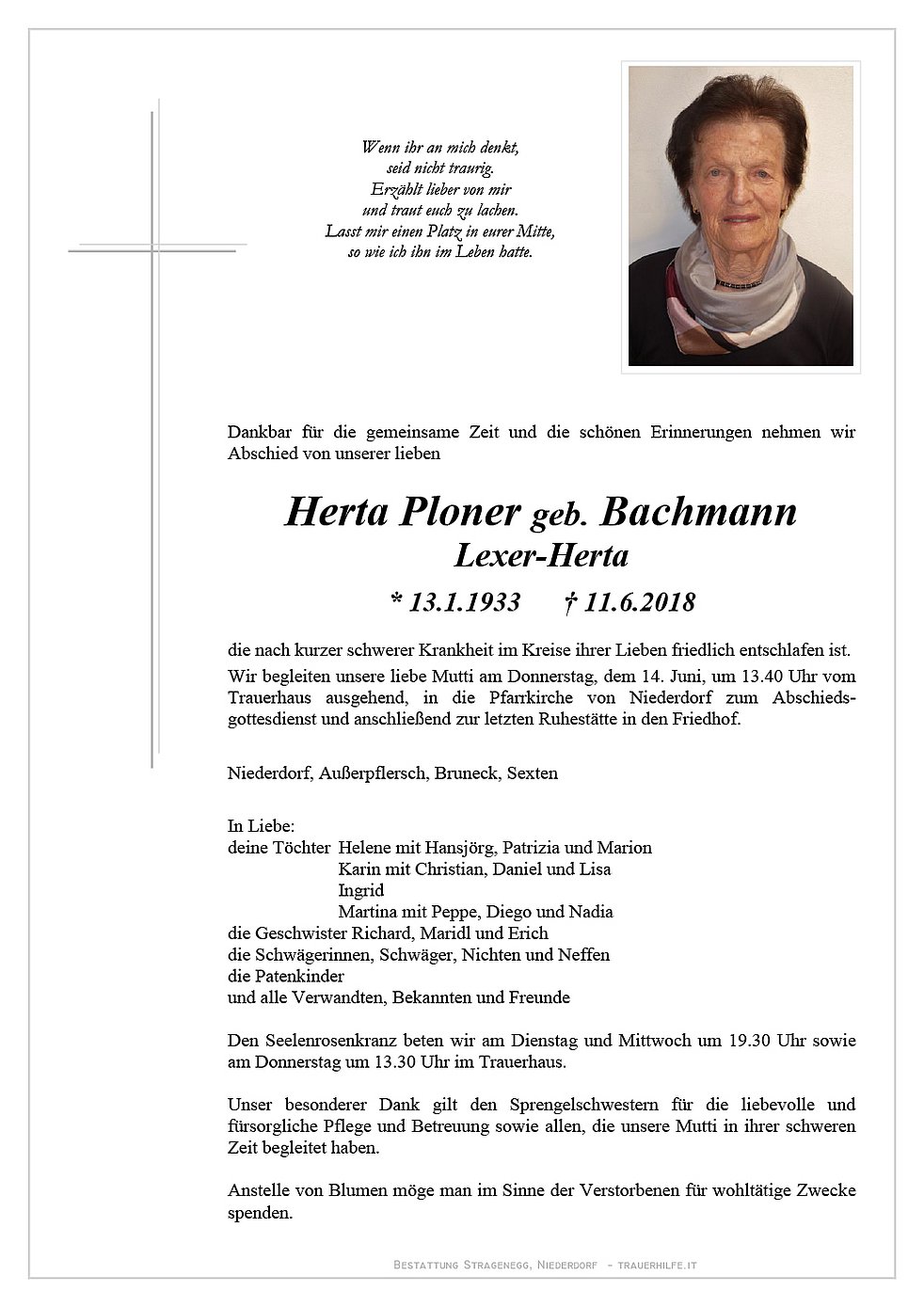 Wir begleiten unsere liebe Mutti am Donnerstag, dem 14. Juni, um 13.40 Uhr vom Trauerhaus ausgehend, in die Pfarrkirche von Niederdorf zum Abschiedsgottesdienst und anschließend zur letzten Ruhestätte in den Friedhof.