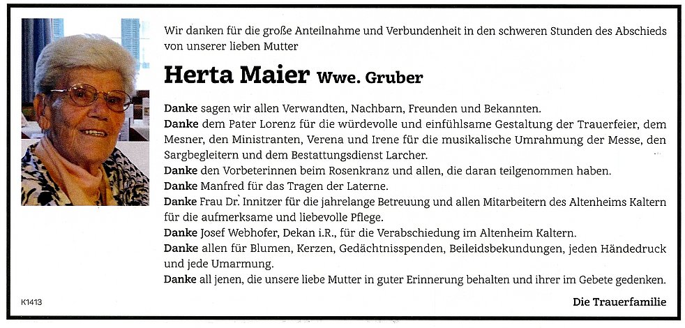 Allen, die am Rosenkranz und an der Beerdigung teilnehmen, im Voraus ein herzliches Vergelt´s Gott.