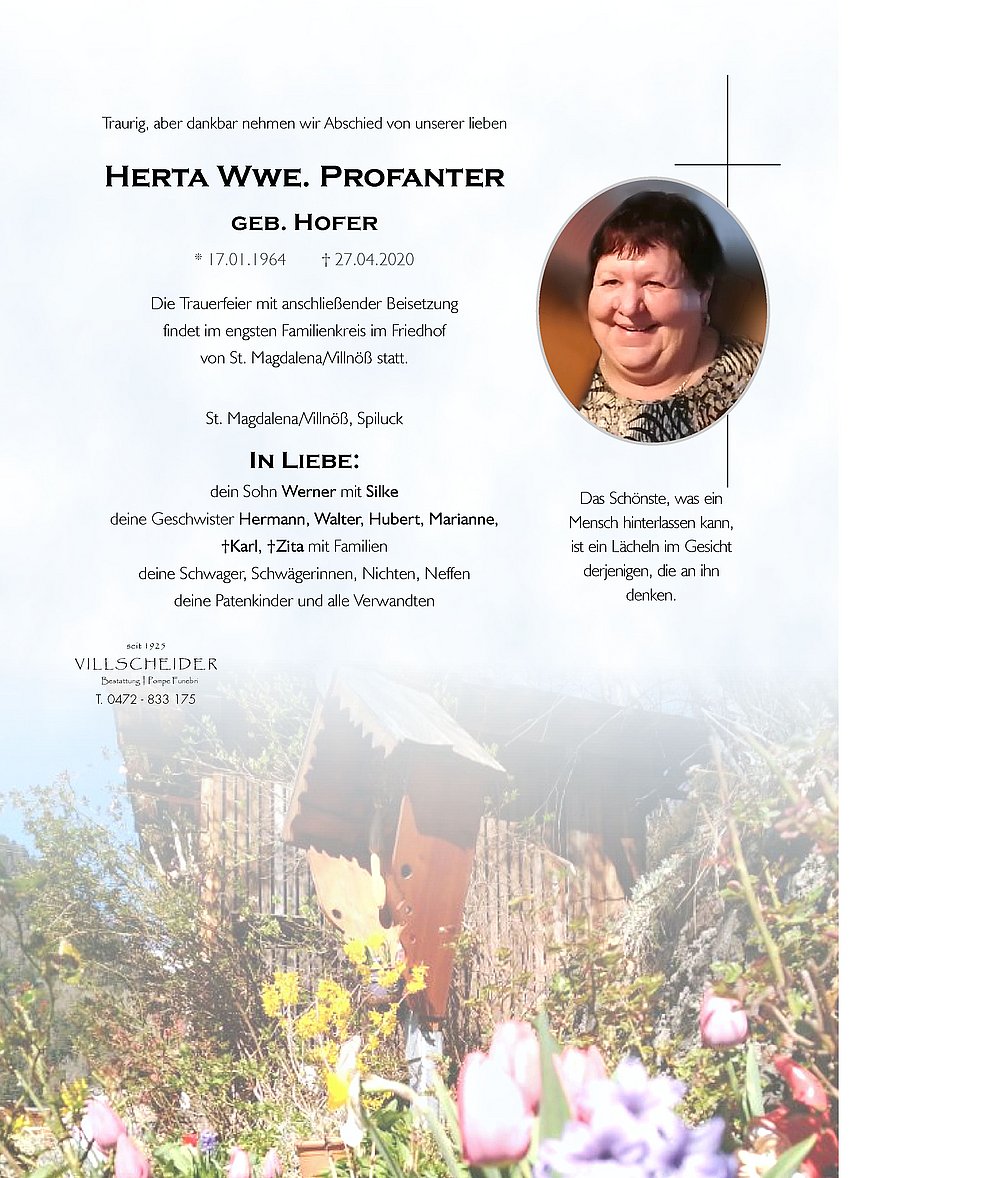 Pfiati Herta Ruhe in Frieden Frieden irgent wann sehn wir uns wider.