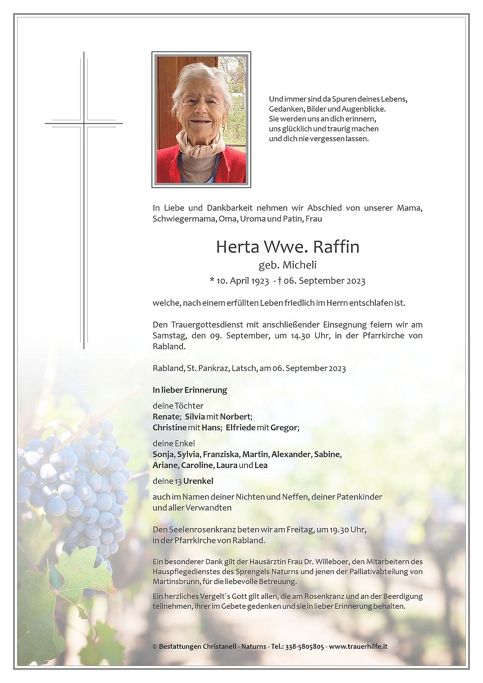 Den Trauergottesdienst mit anschließender Einsegnung feiern wir am Samstag, den 09. September, um 14.30 Uhr, in der Pfarrkirche von Rabland.