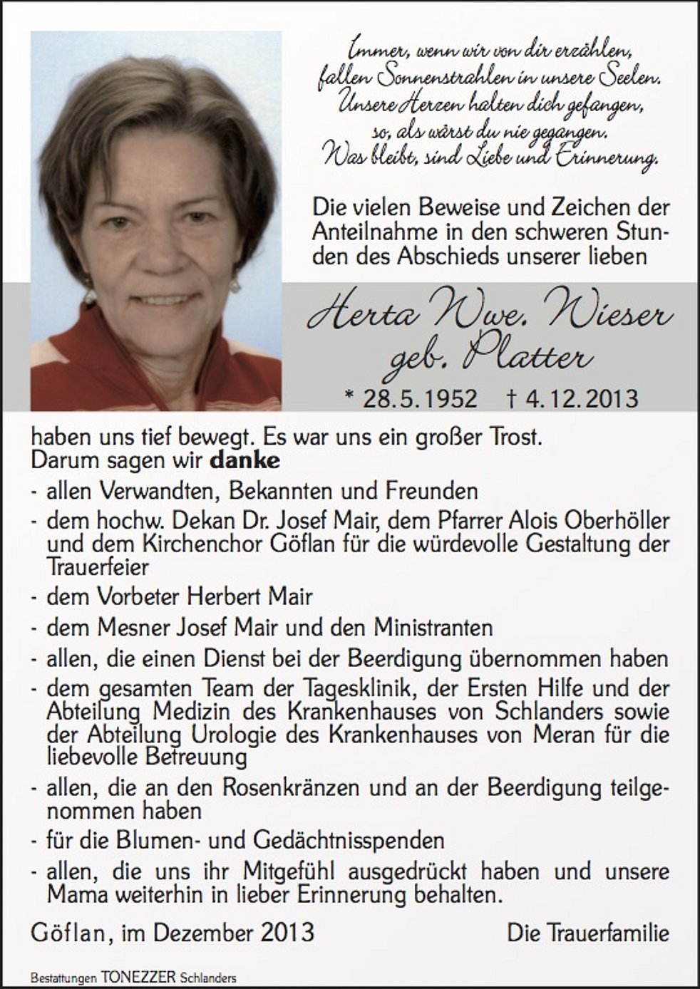 In Liebe und Dankbarkeit nehmen wir Abschied von unserer lieben Mutter, Schwiegermutter, Oma, Schwester, Schwägerin, Tante und Patin, Frau