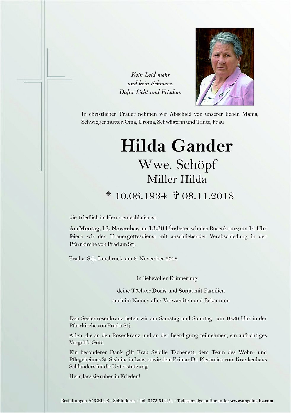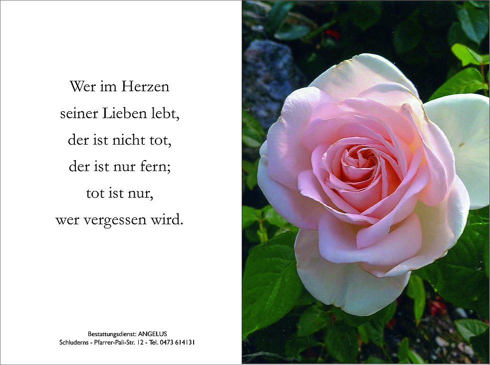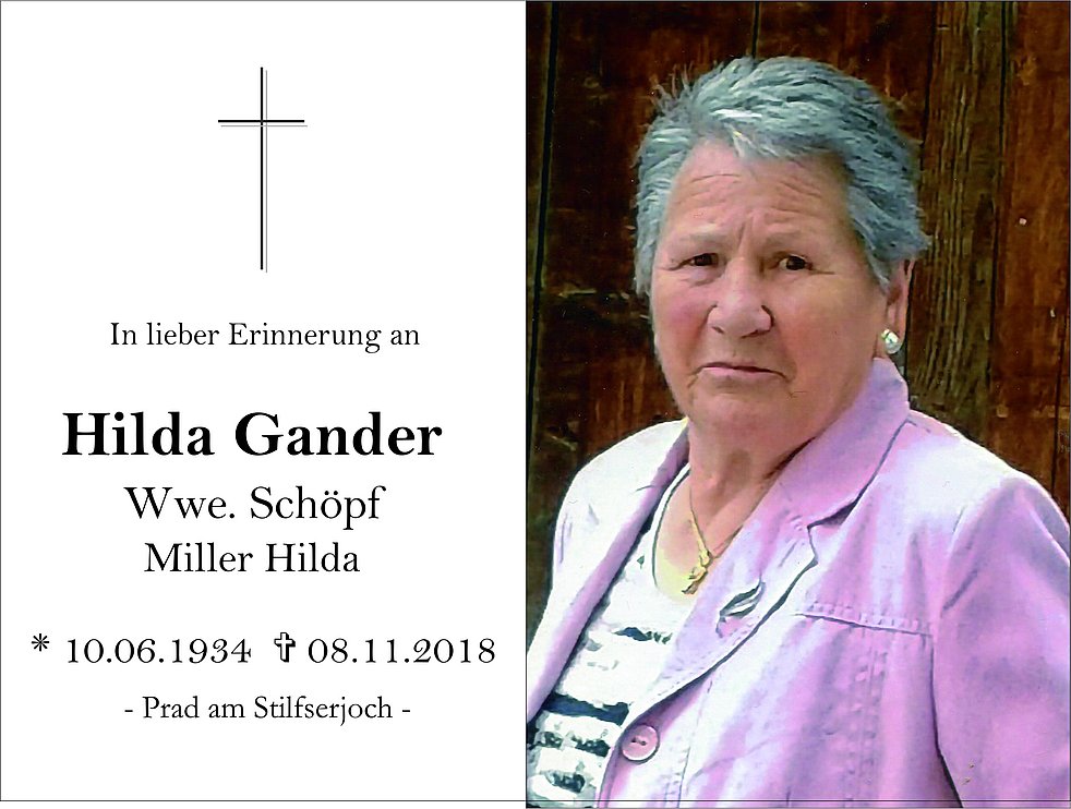 Am Montag, 12. November, um 13.30 Uhr beten wir den Rosenkranz; um 14 Uhr feiern wir den Trauergottesdienst mit anschließender Verabschiedung in der Pfarrkirche von Prad am Stj.