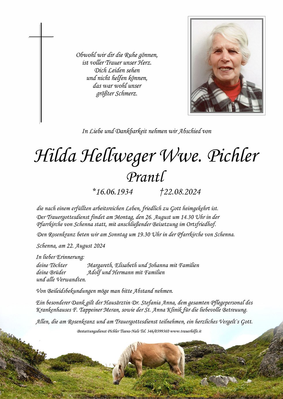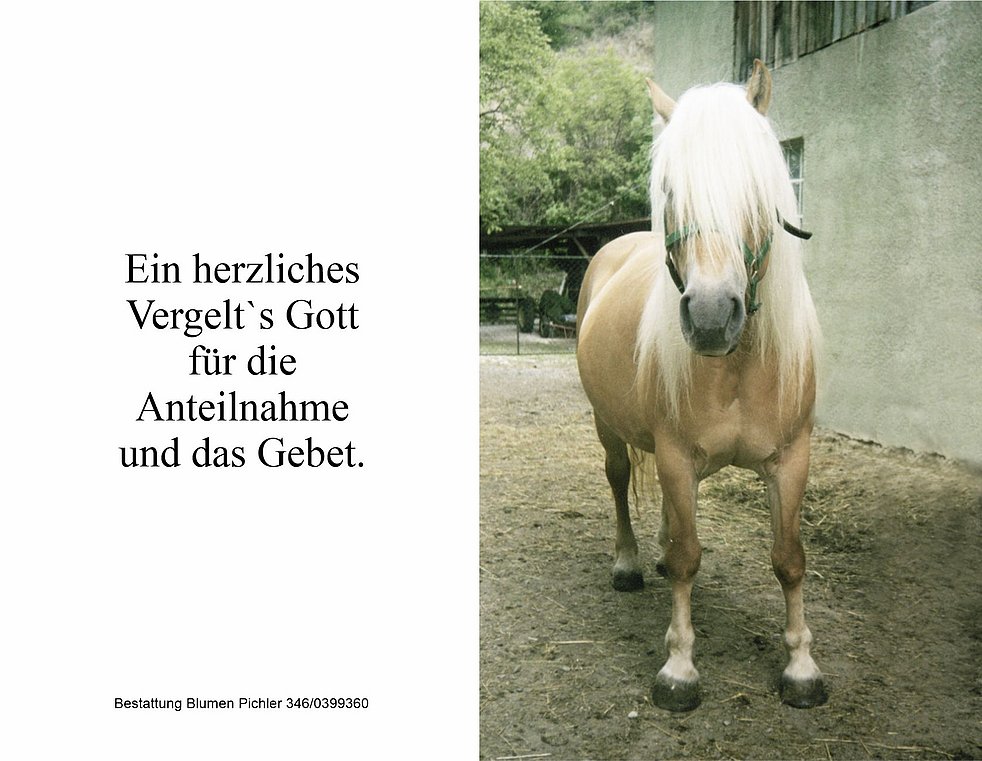 Begräbnisgottesdienst: 26.08. - 14:30 Uhr Pfarrkirche Schenna