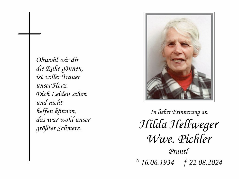 In gedenken deine Nichte Hermine Hellweger mit Fam