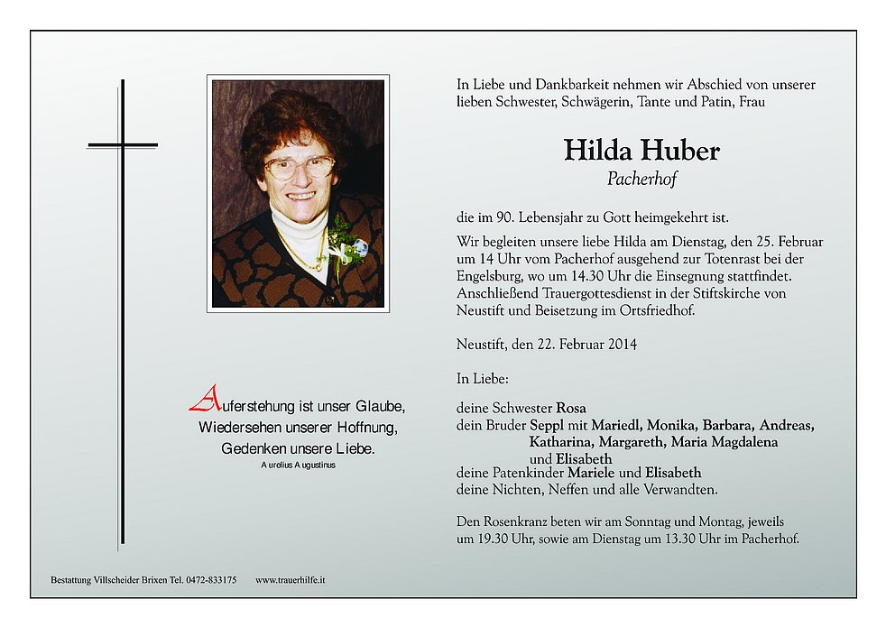 Anschließend Trauergottesdienst in der Stiftskirche von Neustift und Beisetzung im Ortsfriedhof.