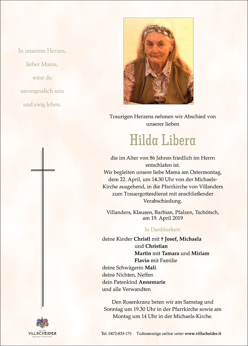 Trauerfeier: 22.04. - 14:30 Uhr Villanders