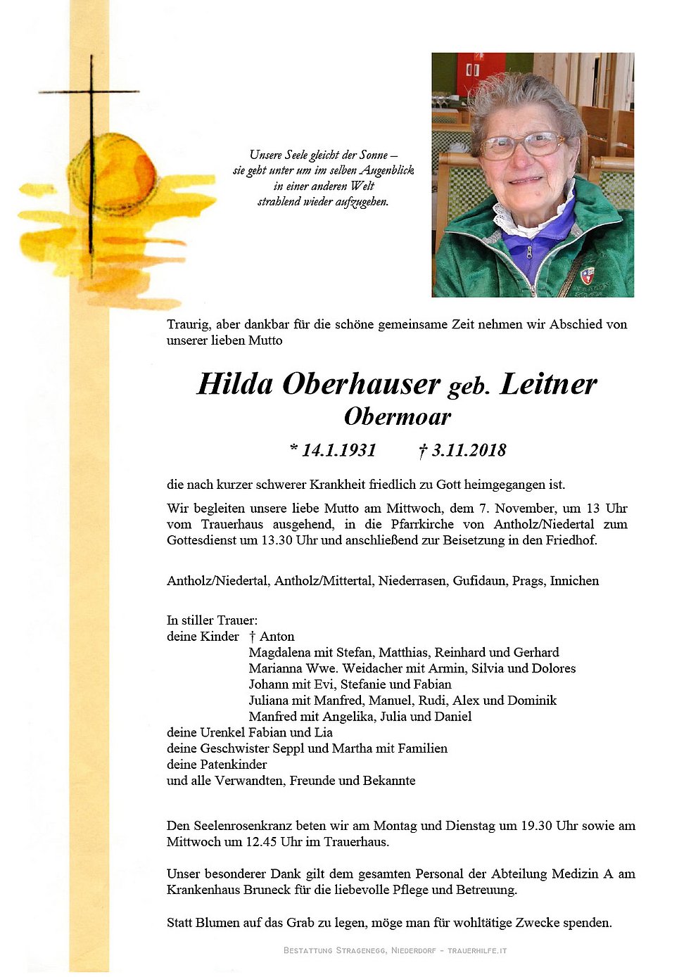 Wir begleiten unsere liebe Mutto am Mittwoch, dem 7. November, um 13 Uhr vom Trauerhaus ausgehend, in die Pfarrkirche von Antholz/Niedertal zum Gottesdienst um 13.30 Uhr und anschließend zur Beisetzung in den Friedhof.