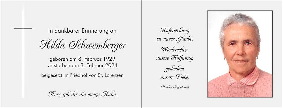 Unsere liebe Hilda ist in der Friedhofskapelle von St. Lorenzen aufgebahrt.