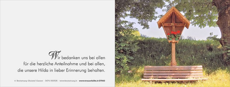 Ein herzliches Vergelt’s Gott gilt dem Hausarzt Herrn Dr. Martin Kofler und seiner Frau Ursula sowie dem Team vom Hauspflegedienst für die liebevolle Betreuung.