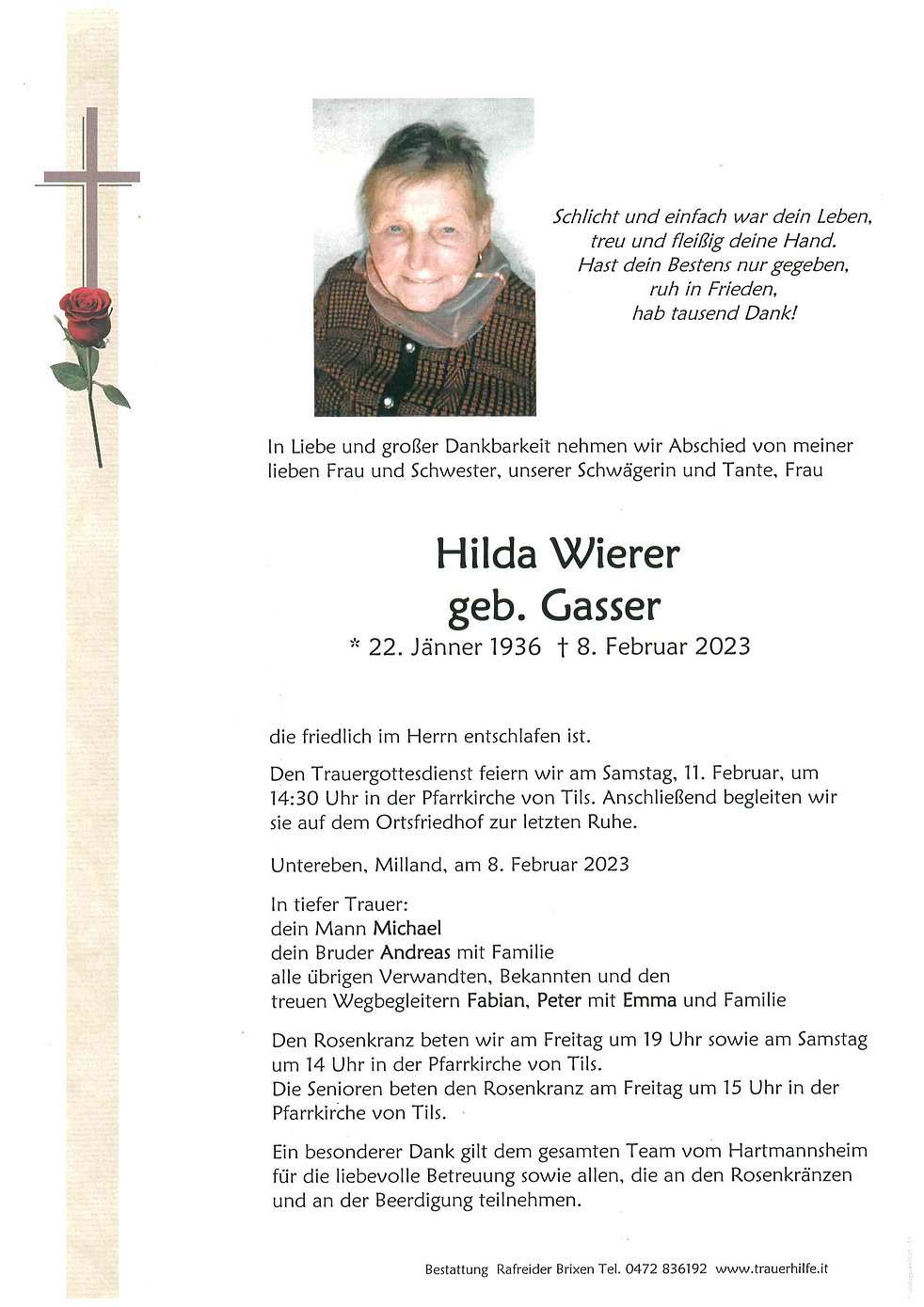 Den Trauergottesdienst feiern wir am Samstag, 11. Februar, um 14:30 Uhr in der Pfarrkirche von Tils. Anschließend begleiten wir sie auf dem Ortsfriedhof zur letzten Ruhe.