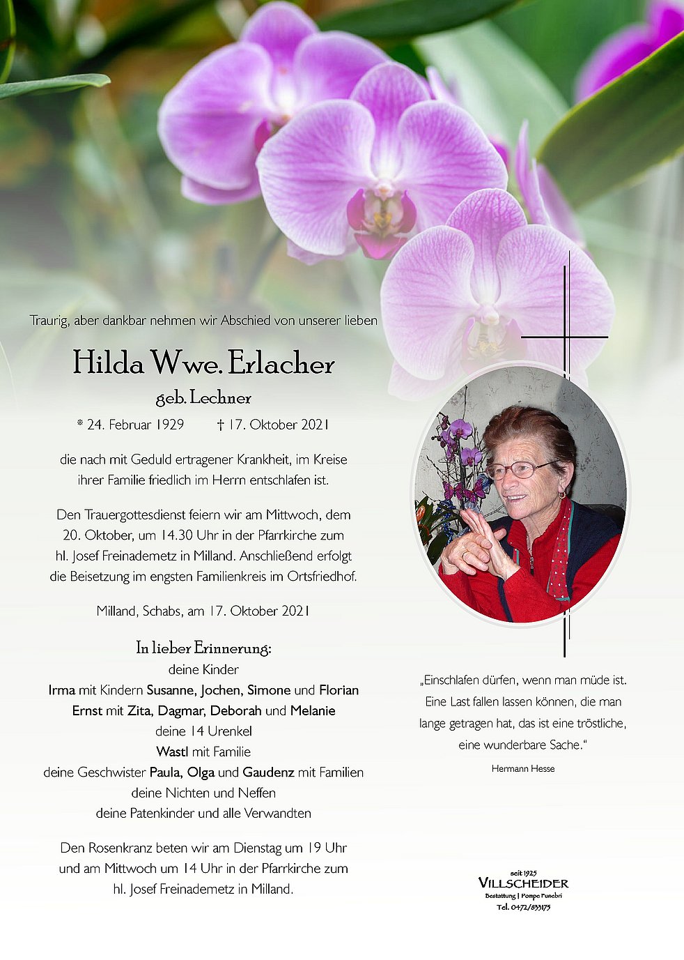 Herzliches Beileid. Wir haben viele schöne Erinnerungen an Hilda.