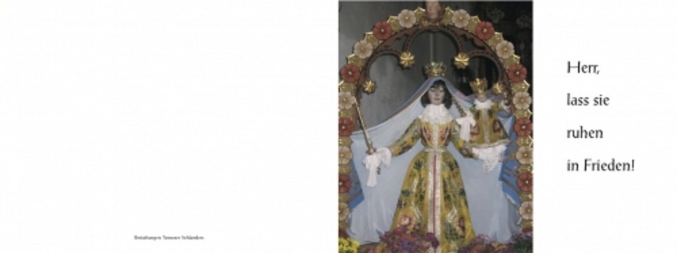 Statt Blumen auf das Grab zu legen, möge man im Sinne der Verstorbenen für die Wallfahrtskirche Drei Brunnen von Trafoi spenden.