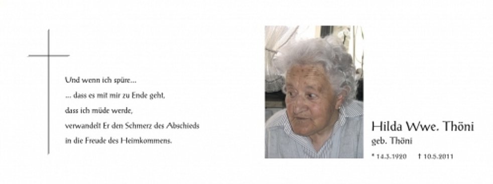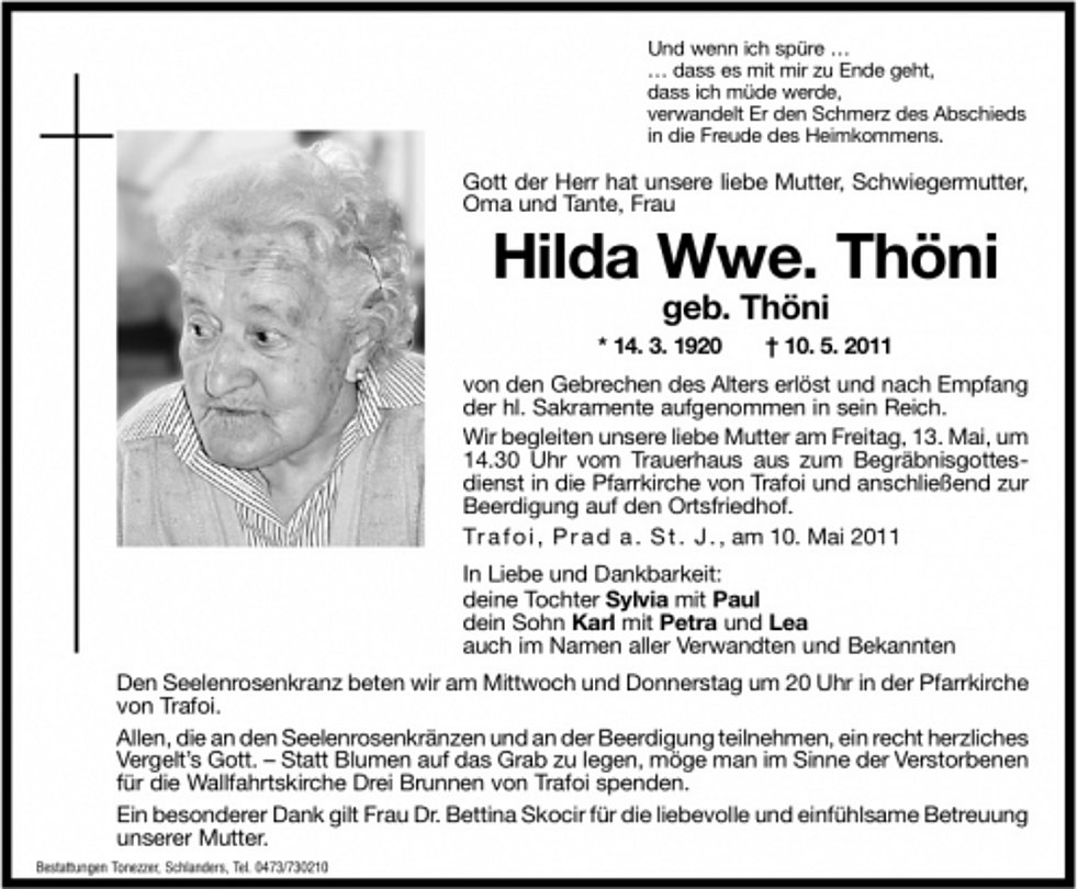 Wir begleiten unsere liebe Mutter am Freitag, 13. Mai, um 14.30 Uhr vom Trauerhaus aus zum Begräbnisgottesdienst in die Pfarrkirche von Trafoi und anschließend zur Beerdigung auf den Ortsfriedhof.